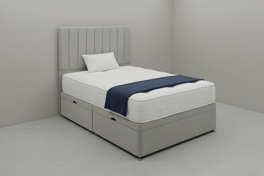 Luxury Grey Upholstered Ottoman Storage Bed with Vertical Panel Headboard