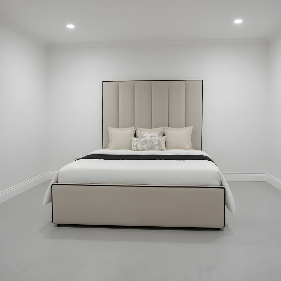 Luxury Cream Upholstered Bed with Vertical Panel Headboard